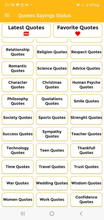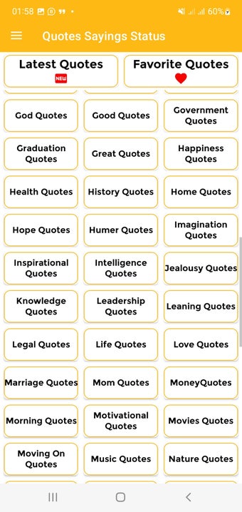Bu uygulama, motivasyonel ve ilham verici alıntılardan mizahi ve romantik olanlara kadar geniş bir yelpazede kategoriler içerir. 300'den fazla kategori bulunmaktadır, bu nedenle herkesin ilham bulabileceği bir şeyler vardır.